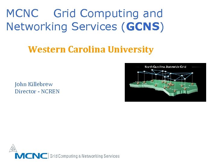MCNC Grid Computing and Networking Services (GCNS) Western Carolina University North Carolina Statewide Grid John Killebrew Director - NCREN