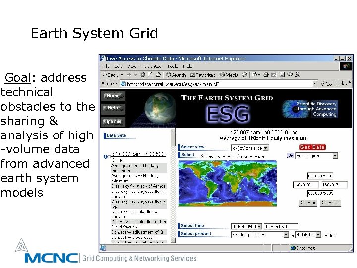 Earth System Grid Goal: address technical obstacles to the sharing & analysis of high -volume data from advanced earth system models