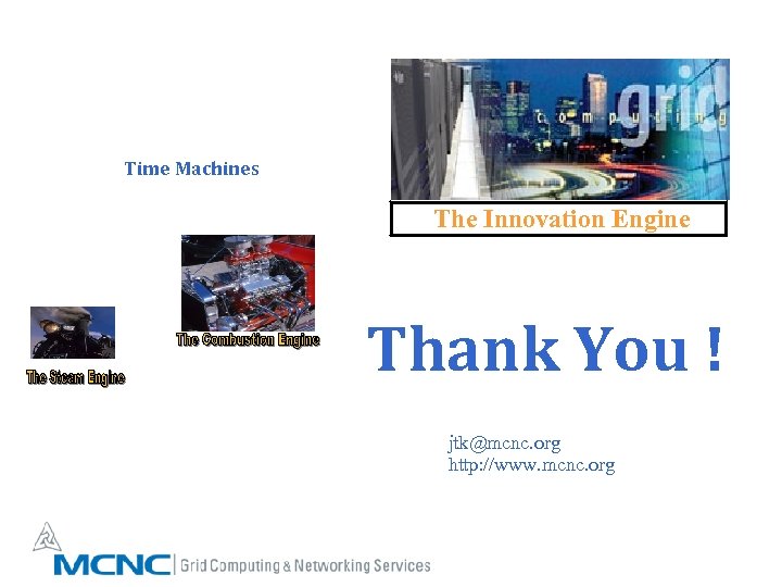 Time Machines The Innovation Engine Thank You ! jtk@mcnc. org http: //www. mcnc. org