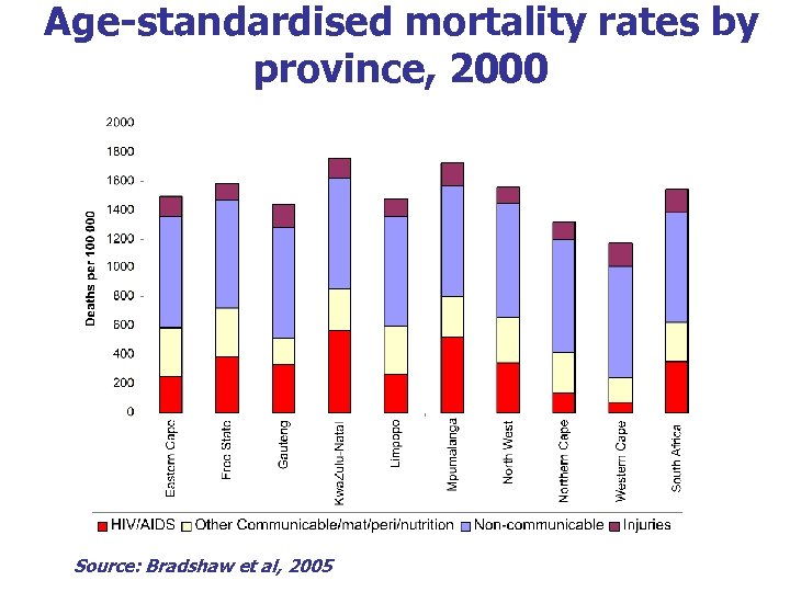 Age-standardised mortality rates by province, 2000 Source: Bradshaw et al, 2005