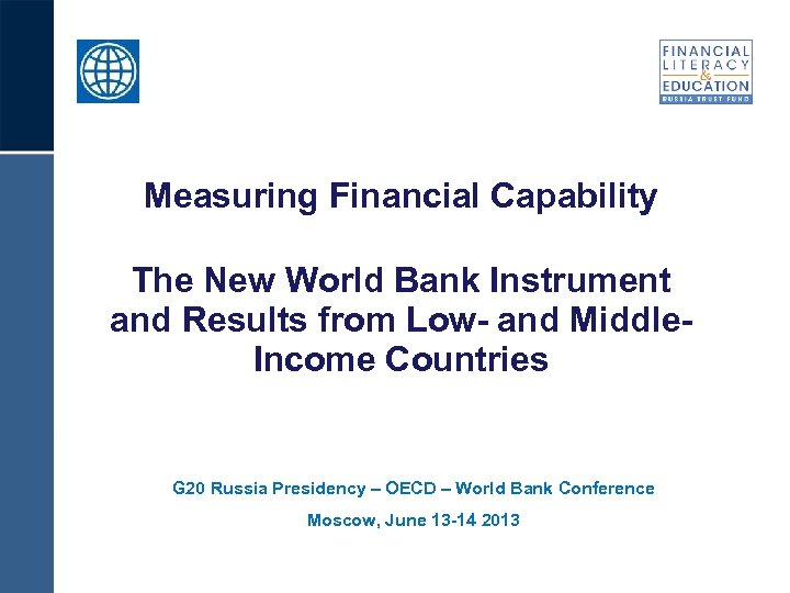 Measuring Financial Capability The New World Bank Instrument and Results from Low- and Middle. Income Countries G 20 Russia Presidency – OECD – World Bank Conference Moscow, June 13 -14 2013