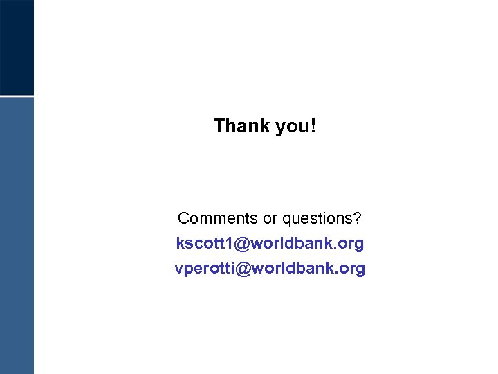 Thank you! Comments or questions? kscott 1@worldbank. org vperotti@worldbank. org
