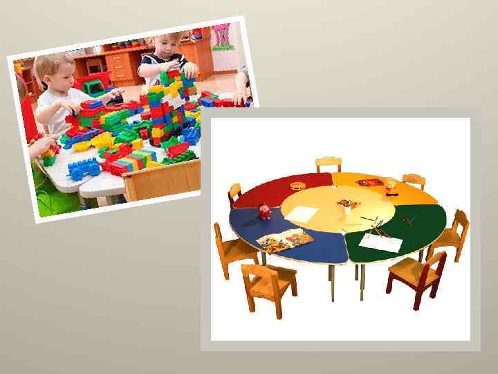 • Для организации настольных игр для детей допускается использовать подоконные ленточные и учебные столы. • Для детей 1, 5 -3 лет в групповых следует предусмотреть спортивный уголок. • При оборудовании групповой соблюдают следующие требования: - столы для занятий старших и подготовительных групп устанавливают вблизи светонесущей стены при обязательном левостороннем освещении рабочего места; - для леворуких детей индивидуальные рабочие места организуют с правосторонним освещением рабочего места. Столы устанавливают следующим образом: - четырехместные столы - не более чем в 2 ряда с учетом обеспечения боковым освещением максимального количества детей; - двухместные столы - не более чем в 3 ряда; - расстояние между рядами столов должно быть не менее 0, 5 м; - расстояние первого ряда столов от светонесущей стены должно быть 1 м; - расстояние от первых столов до настенной доски должно быть 2, 5 -3 м при этом угол рассматривания должен составлять не менее 45 град. • Рабочие поверхности столов должны иметь матовое покрытие светлого тона. Материалы, используемые для облицовки столов и стульев, должны обладать низкой теплопроводностью, быть стойкими к воздействию теплой воды, моющих и дезинфицирующих средств.