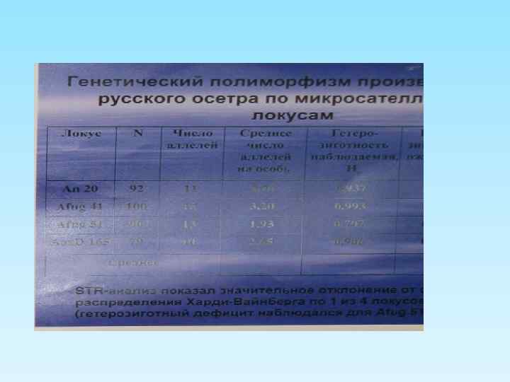 Генетические маркеры в селекционных группах среднерусского карпа Название группы Чешуйный покров генотип фенотип З-НК ssnn разбросанные ЗУ-НК SSnn чешуйчатые ЗУ-НУ ssnn разбросанные Загорские SSnn Нем/ УНКD ssnn Аллели трансфер рина Генотип по гену рисунка А С А dd чешуйчатые А, С, D dd разбросанные А, В, С, D, Z, Y DD Примечание: розовым цветом выделены генетические метки dd dd