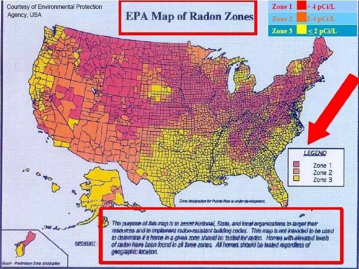 http: //www. epa. gov/radon/zonemap. html Ø Zone 1 counties have a predicted average indoor radon screening level greater than 4 p. Ci/L (pico curies per liter) (red zones) Zone 2 counties have a predicted average indoor radon screening level between 2 and 4 p. Ci/L (orange zones) Ø Zone 3 counties have a predicted average indoor radon screening level less than 2 p. Ci/L (yellow zones) Ø