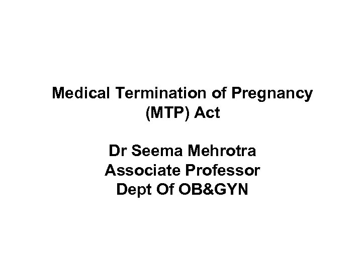 Medical Termination of Pregnancy (MTP) Act Dr Seema Mehrotra Associate Professor Dept Of OB&GYN