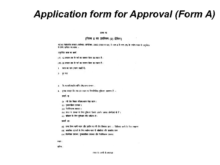 Approval Process • Application in Form A to be addressed to CMHO by place seeking approval • CMHO verifies or inspects the place to satisfy that termination can be done under safe & hygienic conditions • CMHO recommends approval to the committee • Committee considers application & recommendation and approve and issue certificate of approval in Form B