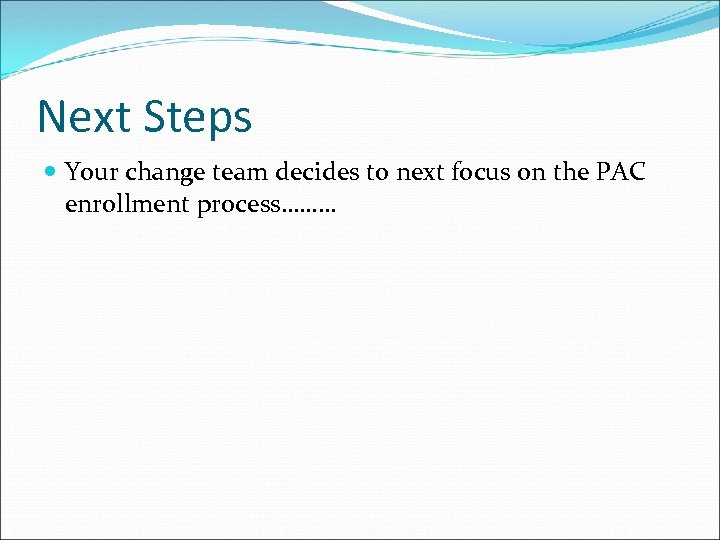Next Steps Your change team decides to next focus on the PAC enrollment process………