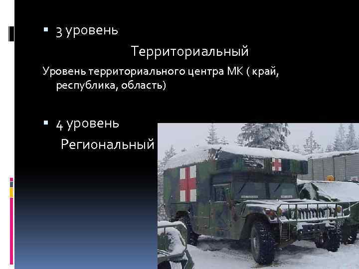 3 уровень Территориальный Уровень территориального центра МК ( край, республика, область) 4 уровень Региональный