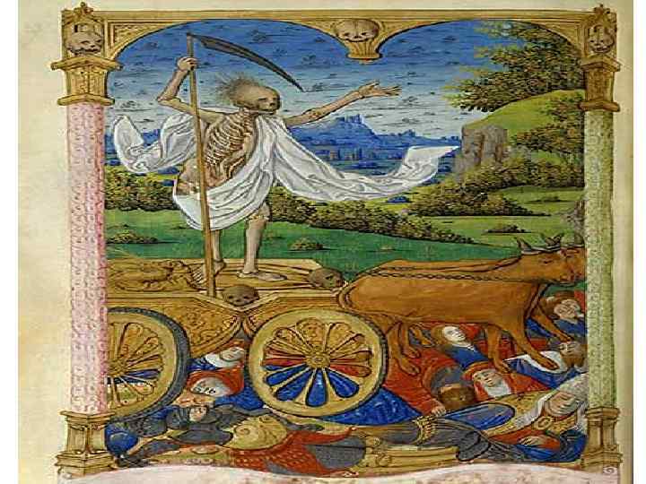 СТРАХ, НАВОДИМЫЙ ЧУМОЙ, запечатлен на картине Питера Брейгеля Старшего «Триумф смерти» , где смерть в виде бродячих скелетов уничтожает все живое.