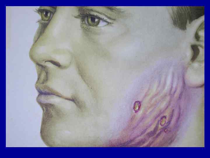 ПАТОГЕНЕЗ • Попадает в подслизистый слой, где размножается. Локализация чаще всего в шейно-лицевой области (5560%), может быть торакальный, абдоминальный, мочеполовой актиномикоз, поражается и ЦНС. • На месте поражения формируется гранулемма с гомогенным центром и колбовидными вздутиями по периферии. Гранулема легко распадается, образуется гной, выделяющийся наружу через формирующиеся свищи. Возможен прорыв гноя в кишечник, в бронх. • Из первичного очага процесс может распространяться контактным или лимфогенным путем. Часто присоединяется вторичная инфекция. • Заболевание носит хроническое течение с ремиссиями и обострениями.
