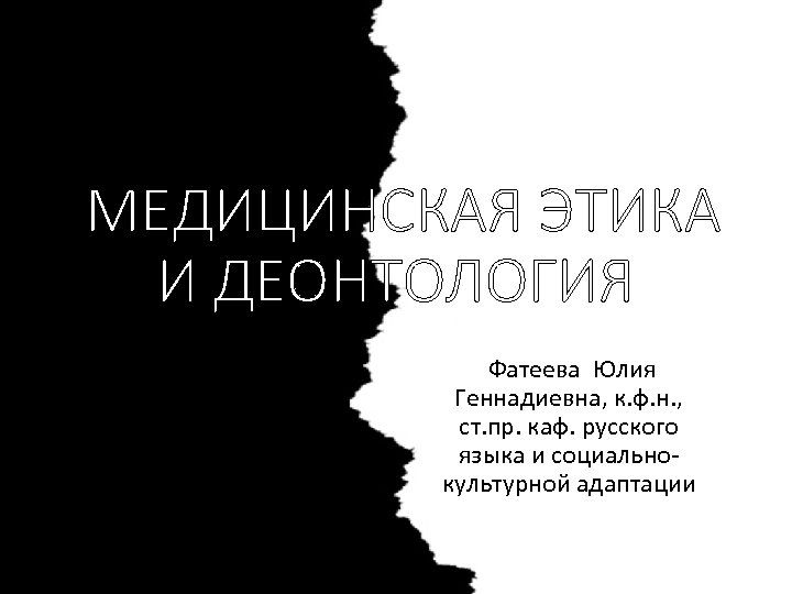МЕДИЦИНСКАЯ ЭТИКА И ДЕОНТОЛОГИЯ Фатеева Юлия Геннадиевна, к. ф. н. , ст. пр. каф. русского языка и социальнокультурной адаптации