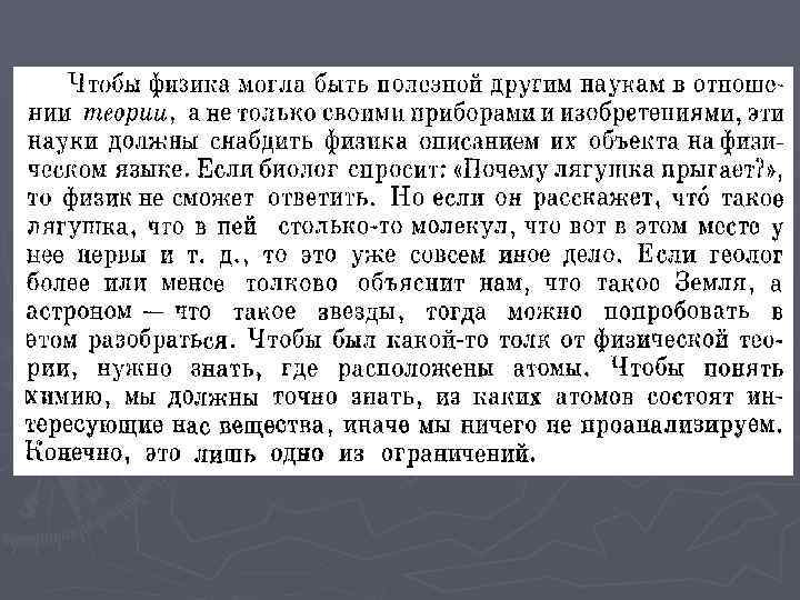 Химия С незапамятных времен химия и физика взаимодействуют очень сильно: вся теория атомного строения вещества получила основательную поддержку в химическом эксперименте. Химическую теорию, т. е. теорию самих реакций, подытожила периодическая система Менделеева. Она выявила немало удивительных связей между разными элементами стало ясно, что с чем и как соединяется; все эти правила составили неорганическую химию. Сами они были в конечном счете объяснены квантовой механикой. Стало быть, на самом деле теоретическая химия это физика. Есть ветвь физики и химии, к которой они обе приложили руки. В любой химической реакции действует много атомов, а движения их случайны и замысловаты. Значит нужно научиться работать с такими сложными системами. Позволяет это сделать статистическая механика, которая, кроме того, лежит в основе теории тепловых явлений, или термодинамики. В наше время неорганическая химия как наука свелась в основном к физической и квантовой химии; первая изучает скорости реакций и прочие их детали (как попадает молекула в молекулу, какая из частей молекулы оторвется первой и т. д. ), а вторая помогает понимать происходящее на языке физических законов. Другая ветвь химии органическая химия, химия веществ связанных с жизненными процессами. Органическая химия тесно связана с биологией; многое из физической химии и квантовой механики столь же приложимо к органическим соединениям, как и к неорганическим. Впрочем, главные задачи органической химии вовсе не в этом, а в анализе и синтезе веществ, образуемых в биологических системах. Отсюда можно перейти к биохимии и к самой биологии
