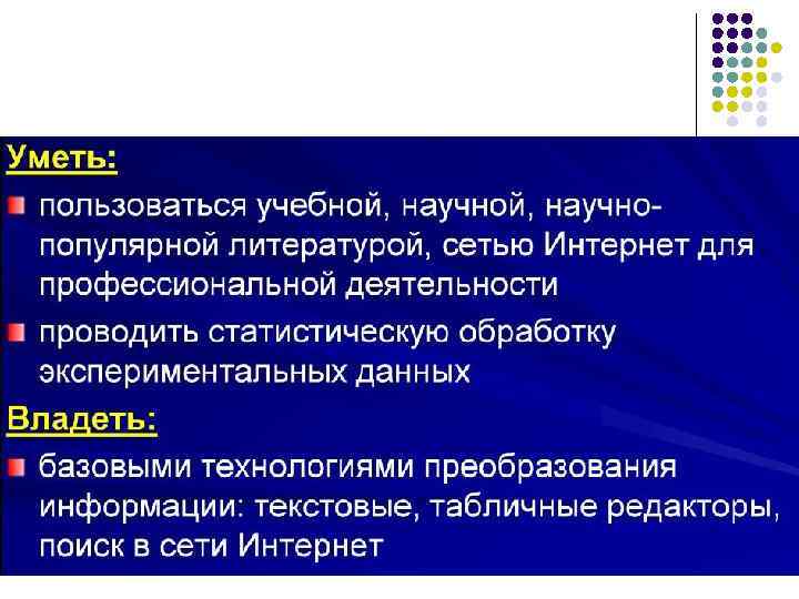 Выпускник должен знать: