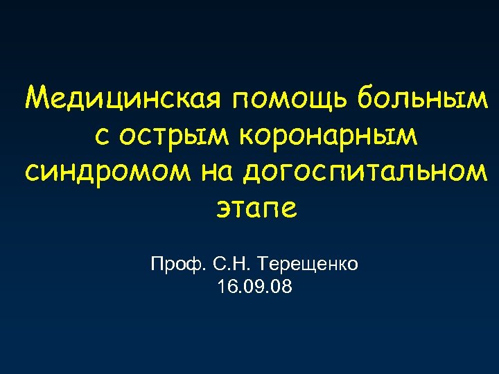 Медицинская помощь больным с острым коронарным синдромом на догоспитальном этапе Проф. С. Н. Терещенко 16. 09. 08