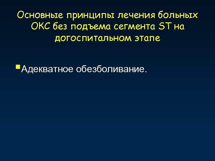 Основные принципы лечения больных ОКС без подъема сегмента ST на догоспитальном этапе §Адекватное обезболивание.