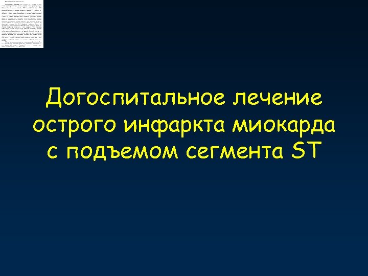 Догоспитальное лечение острого инфаркта миокарда с подъемом сегмента ST