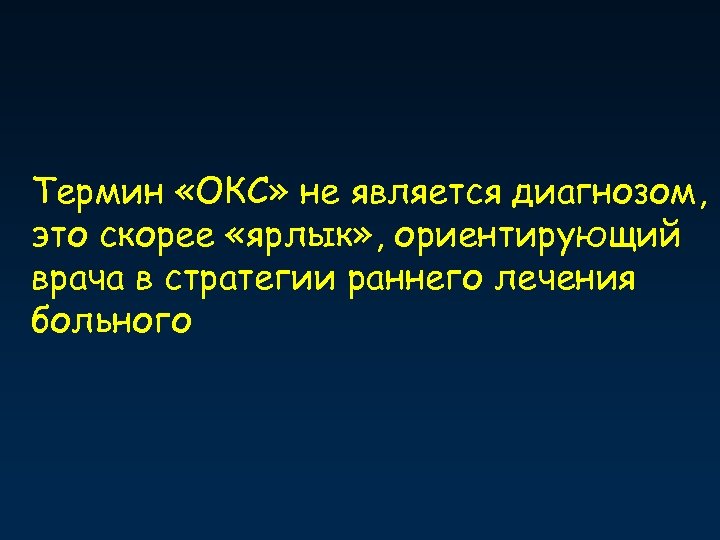 Термин «ОКС» не является диагнозом, это скорее «ярлык» , ориентирующий врача в стратегии раннего лечения больного