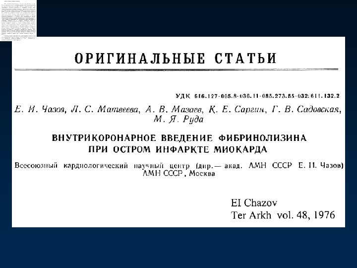 Динамика смертности от инфаркта миокарда Прирост смертности за 5 лет - 2, 8% Чазов Е. И.