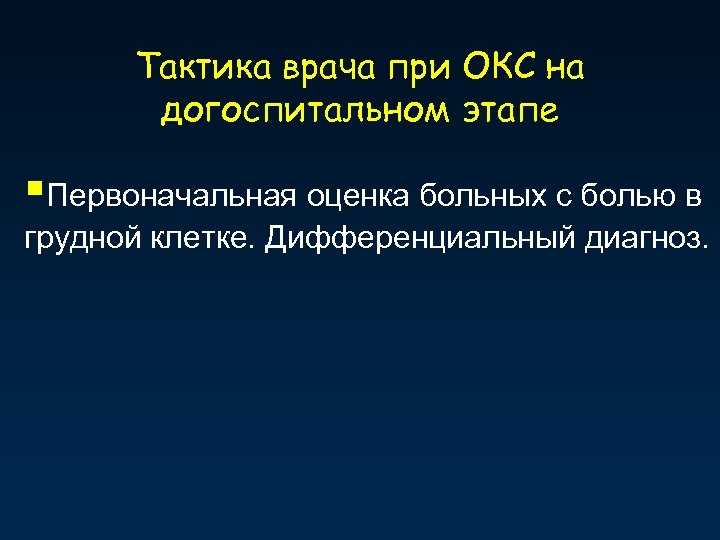 Тактика врача при ОКС на догоспитальном этапе §Первоначальная оценка больных с болью в грудной клетке. Дифференциальный диагноз.