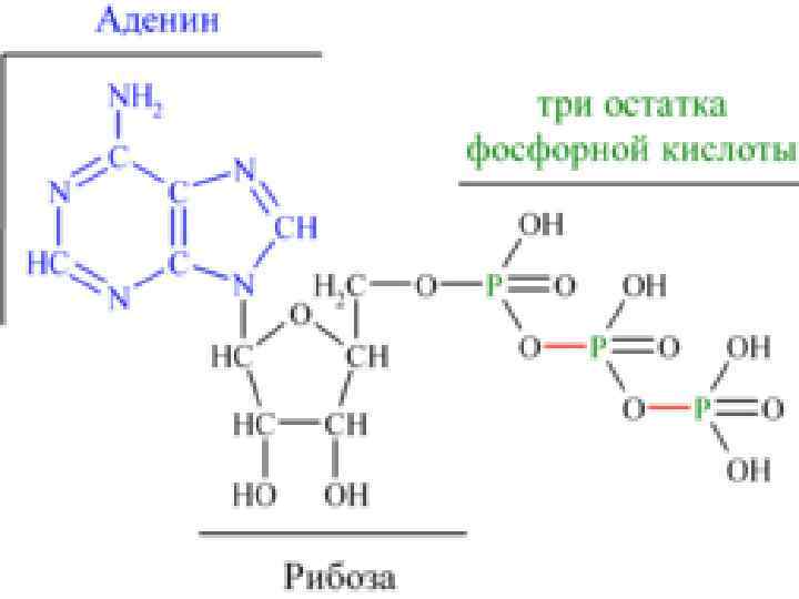 Ø АТФ относится к так называемым макроэргическим соединениям, то есть к химическим соединениям, содержащим связи, при гидролизе которых происходит освобождение значительного количества энергии. Гидролиз макроэргических связей молекулы АТФ, сопровождаемый отщеплением 1 или 2 остатков фосфорной кислоты, приводит к выделению, по различным данным, от 40 до 60 к. Дж/моль. l l АТФ + H 2 O → АДФ + H 3 PO 4 + энергия АТФ + H 2 O → АМФ + H 4 P 2 O 7 + энергия