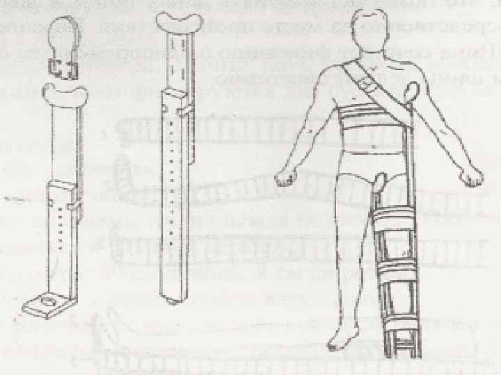 наружной шины (костыля) палочкизакрутки со шнуром. Шина Дитерихса состоит подошвы внутренней шины (костыльбранш)