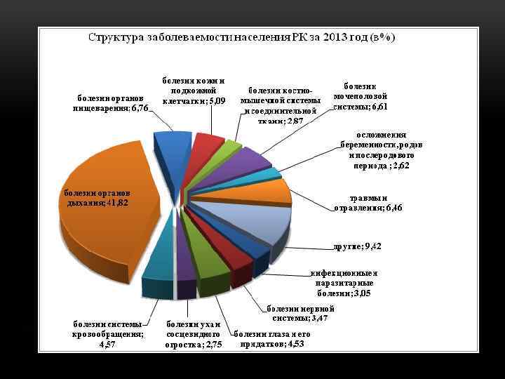 • В каких регионах зарегистрировано больше заболеваний? • Так за прошлый год, согласно открытым данным, наибольшее количество заболеваний наблюдалось: в Павлодарской области (76078, 9), далее следуют г. Алматы (69351, 6) и Жамбылская область ( 67538, 4). Наименьшее количество заболеваний отмечается в Атырауской области (29480) и ЗКО (42853). • Заболевания, связанные со злокачественными новообразованиями, более всего отмечаются по итогам прошлого года в СКО (337, 8), Павлодарской области (302, 3), Костанайской области (299, 8). Наименьшие показатели в Алматинской области (53, 1) и ЮКО (101). • Наибольшее количество людей с заболеванием туберкулез по данным прошлого года отмечается в СКО (72, 9), в Акмолинской области (70, 8) и Атырауской области (66, 3). Наименьшее количество в г. Алматы (36, 7) и в ЮКО (40, 8). • Наибольшее число больных сахарным диабетом по данным
