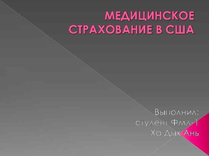 МЕДИЦИНСКОЕ СТРАХОВАНИЕ В США Выполнил: студент Фмд-1 Ха Дык Ань