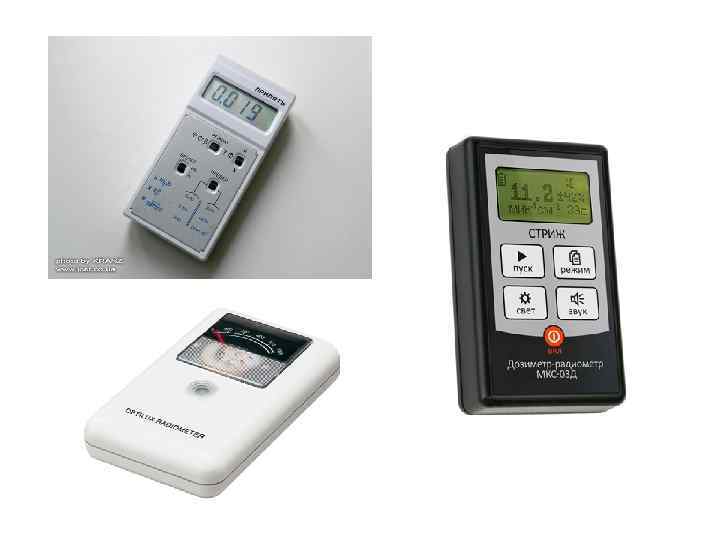 • • Количественные и качественные характеристики радиоактивного излучения, основанные на тех или иных методах регистрации, измеряются радиометрами, дозиметрами, спектрометрами и спектрометрическими комплексами. Радиометр прибор для измерения числа актов радиоактивного распада в единицу времени (активности). Определяет плотность потока ионизирующих излучений и т. д. При измерении мощности экспозиционной дозы фотонного излучения функции радиометра и дозиметра совпадают. Дозиметр устройство для измерения доз радиоактивного излучения или величин, связанных с дозами (мощность экспозиционной дозы, мощность поглощенной дозы и т. д. ). Могут служить для измерения доз одного (гамма дозиметр, нейтронный дозиметр и т. д. ), либо смешанного излучения (гамма бета дозиметр и т. д. ). Спектрометр устройство, которое позволяет измерять распределение радиоактивного излучения по энергии (гамма альфа спектрометры и т. д. ), массе и заряду (масс спектрометры и т. д. ). Гамма спектрометр, например, позволяет выявить в смеси гамма излучающих радионуклидов по характерной энергии присутствие конкретных радиоизотопов. Так, торий определяется по энергии гамма квантов дочернего изотопа Т 1208 с энергией 2, 165 Мэв, калий 40 1, 46 Мэв, а цезий 137 по энергии 0, 662 Мэв и т. д. Существует большое количество типов и моделей радиометрического, дозиметрического и спектрометрического оборудования. Данная аппаратура может быть переносной (габариты и масса позволяют носить одному человеку), передвижной (автомобильные, вертолетные и спутниковые варианты), стационарной