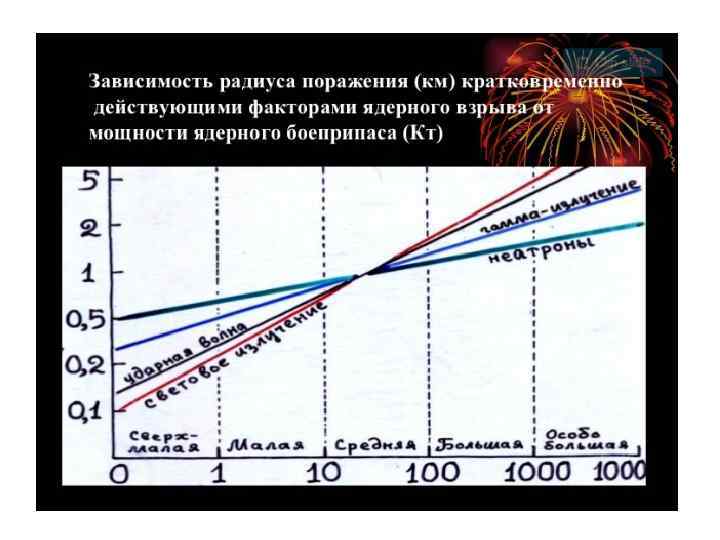Очаги радиационного поражения При ядерных взрывах: • обусловленные действием проникающей радиации ядерного взрыва; • обусловленные радиоактивным заражением местности При авариях: • ядерных энергетических установок (АЭС, атомные силовые установки) ; • ядерных боеприпасов; • ядерных исследовательских реакторов; • объектов радиохимического производства; • транспортных средств, перевозящих радиоактивные вещества