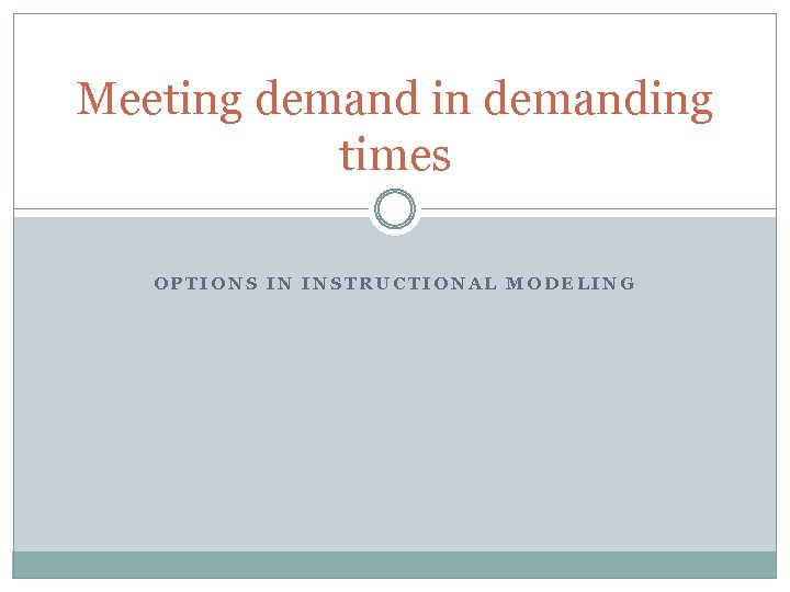 Meeting demand in demanding times OPTIONS IN INSTRUCTIONAL MODELING