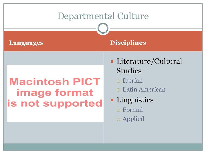 Departmental Culture Languages Disciplines Literature/Cultural Studies Iberian Latin American Linguistics Formal Applied