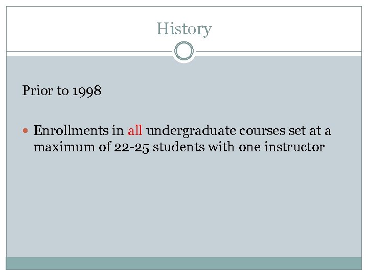 History Prior to 1998 Enrollments in all undergraduate courses set at a maximum of 22 -25 students with one instructor