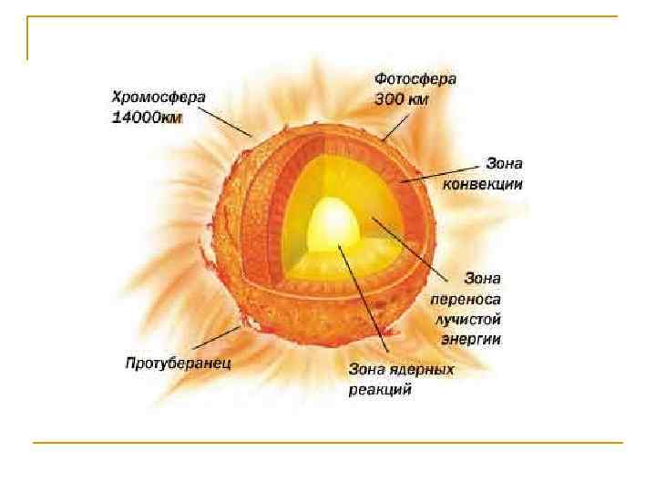 n Фотосфера – видимая поверхность Солнца на ней наблюдаются тёмные пятна. Причина их появления – сильные магнитные поля, которые замедляют движение горячих потоков от центра Солнца к его поверхности.