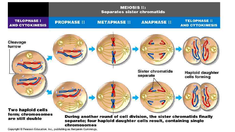 Meiosis II • After meiosis I cells immediately begins second division, meiosis II