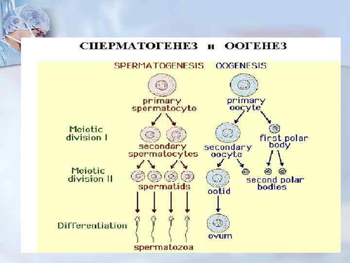 Краткий обзор этапов гаметогенеза Гаметогенез подразделяется на сперматогенез (процесс образования сперматозоидов у самцов) и оогенез (процесс образования яйцеклетки). По тому, что происходит с ДНК, эти процессы практически не отличаются: одна исходная диплоидная клетка дает четыре гаплоидные. Однако, по тому, что происходит с цитоплазмой, эти процессы кардинально различаются.
