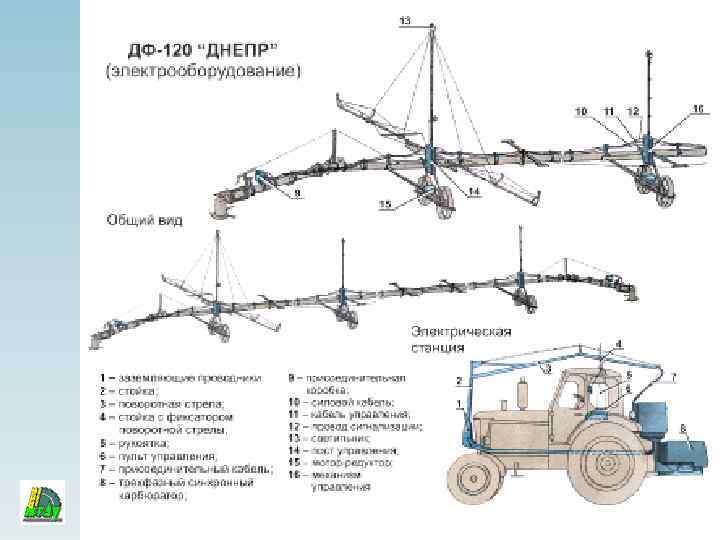Полосовой барабанный ороситель 1 – барабан с шлангом; 2 – трубопровод для подачи воды в шланг; 3 – перекладина отключения привода; 4 – колесное шасси; 5 – затвор с выключателем; 6 – поворотная плита; 7 – турбина привода барабана; 8 – опорная нога; 9 – коробка передач Колёсный прицепной штатив с дождевателем 89