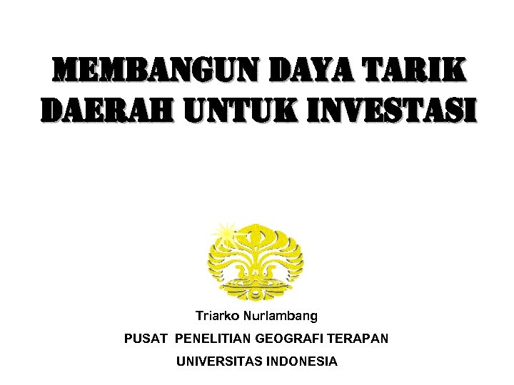 MEMBANGUN DAYA TARIK DAERAH UNTUK INVESTASI Triarko Nurlambang PUSAT PENELITIAN GEOGRAFI TERAPAN UNIVERSITAS INDONESIA