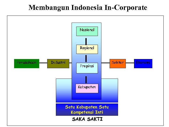 Membangun Indonesia In-Corporate Nasional Regional Perusahaan Industri Propinsi Kabupaten Satu Kompetensi Inti SAKA SAKTI Sektor Ekonomi