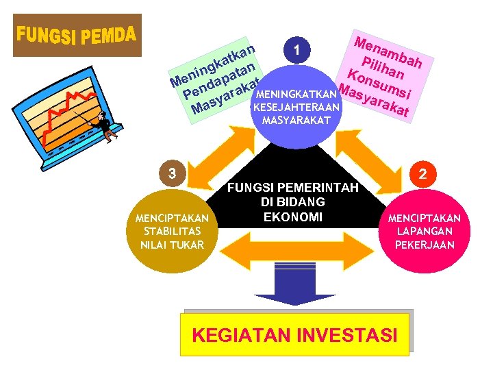 Men amb n 1 tka a Pili han h gka tan n Kon eni dapa at M n k MENINGKATKANMas sumsi yar Pe syara aka KESEJAHTERAAN Ma t MASYARAKAT 3 MENCIPTAKAN STABILITAS NILAI TUKAR FUNGSI PEMERINTAH DI BIDANG EKONOMI 2 MENCIPTAKAN LAPANGAN PEKERJAAN KEGIATAN INVESTASI