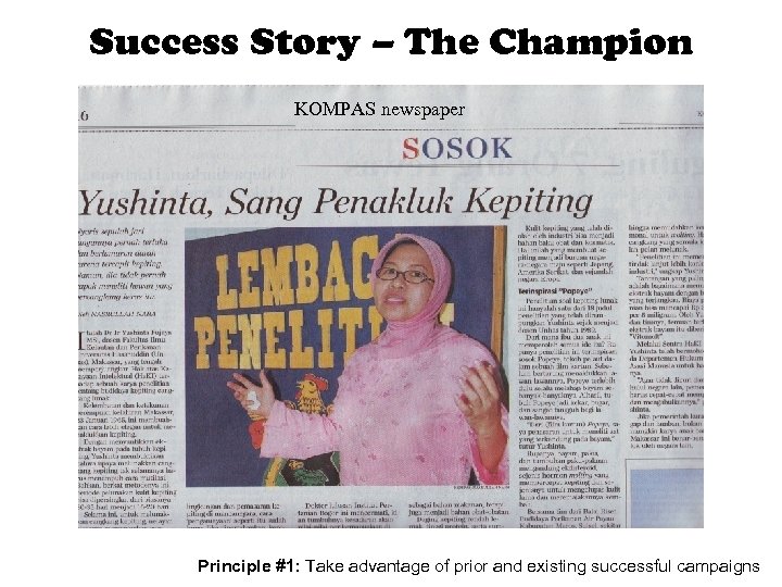 Success Story – The Champion KOMPAS newspaper Principle #1: Take advantage of prior and existing successful campaigns