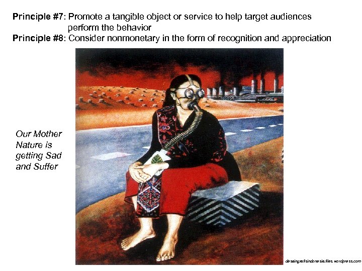 Principle #7: Promote a tangible object or service to help target audiences perform the behavior Principle #8: Consider nonmonetary in the form of recognition and appreciation Our Mother Nature is getting Sad and Suffer desaingrafisindonesia. files. wordpress. com