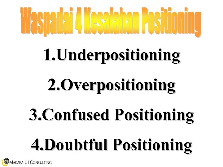 1. Underpositioning 2. Overpositioning 3. Confused Positioning 4. Doubtful Positioning