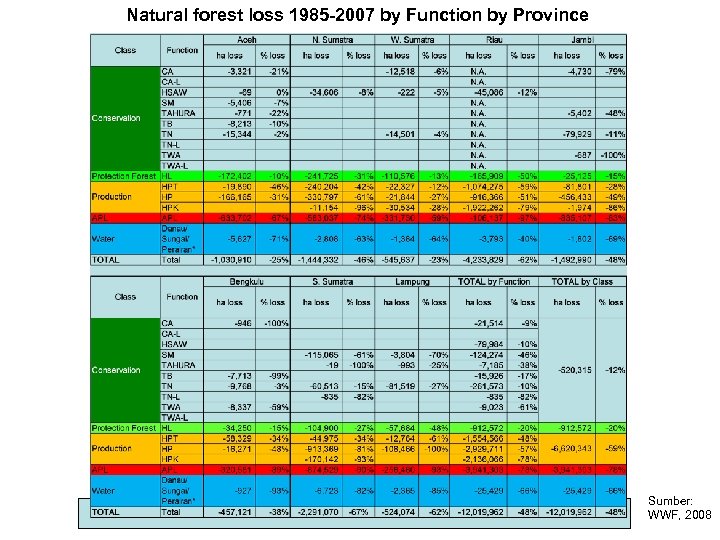 Natural forest loss 1985 -2007 by Function by Province Sumber: WWF, 2008