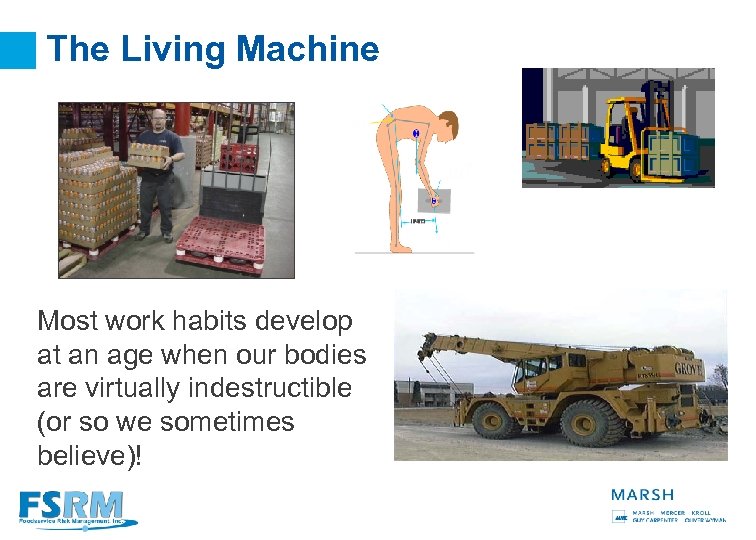 The Living Machine Most work habits develop at an age when our bodies are virtually indestructible (or so we sometimes believe)! 6