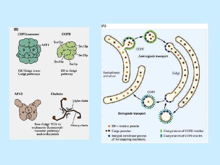 Полярность ап. Гольджи В ап. Гольджи белки попадают в виде везикул, формирующихся из мембраны ЭР. Различают формирующуюся (цис-) и созревающую (транс-) стороны. TGN – trans Golgi network или Транс Гольджи сеть