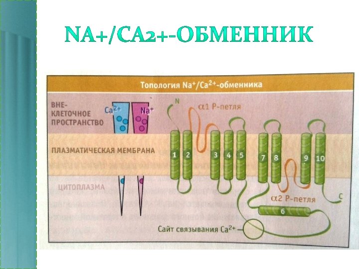 СА 2+ - АТФ-АЗА • Содержит 10 трансмембранных α-спиралей, 3 из которых образуют центральный канал, пересекающий липидный бислой. • Составляет 90% белков саркоплазматического ретикулума в скелетных мышцах. • Обеспечивает обратную закачку Са 2+ из цитозоля в СПР. • ЭПС немышечных клеток несет Са-насосы подобного действия и строения, но в меньших количествах.