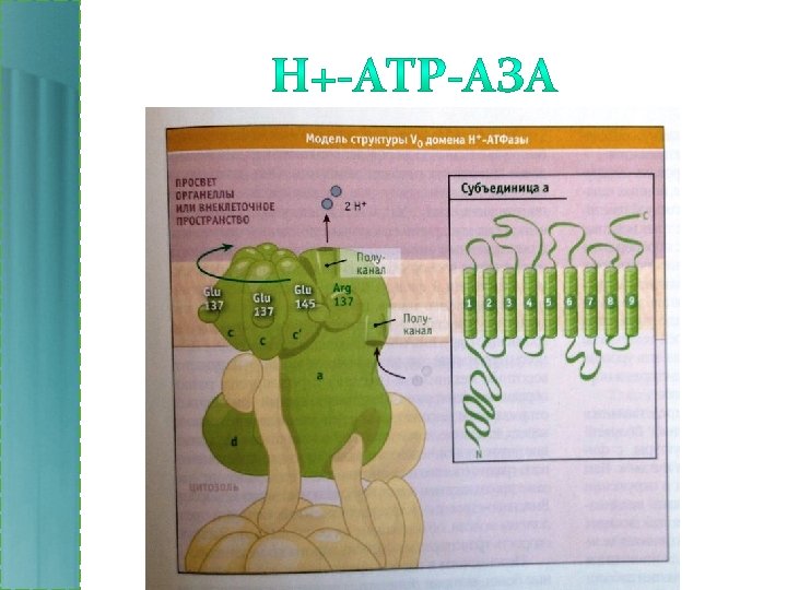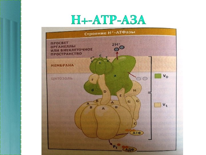 • • • Характерны для внутренней мембраны митохондрий, тилакоидных мембран хлоропластов, плазматических мембран бактерий. Используют градиент Н+ для фосфорилирования ADР до АТР Градиент Н+ создается при транспорте электронов во время окислительного фосфорилирования (в митохондриях, аэробных бактерии), фотосинтеза (хлоропласты).