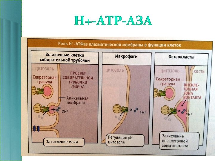 • Са 2+ - АТФ-аза • K+ / Na+ - АТФ-аза • Н+ - АТФ-аза.