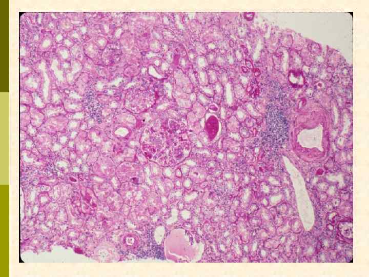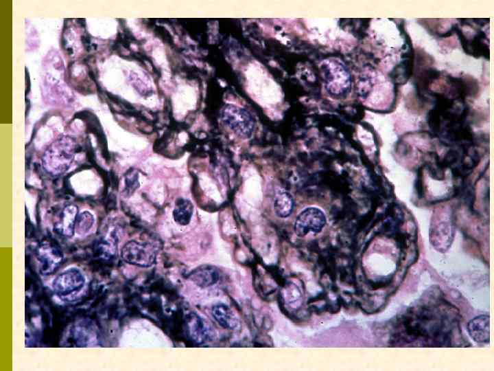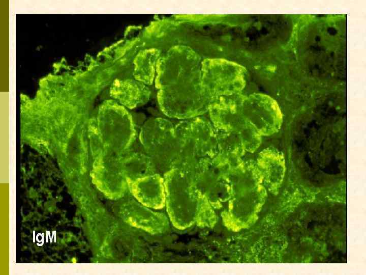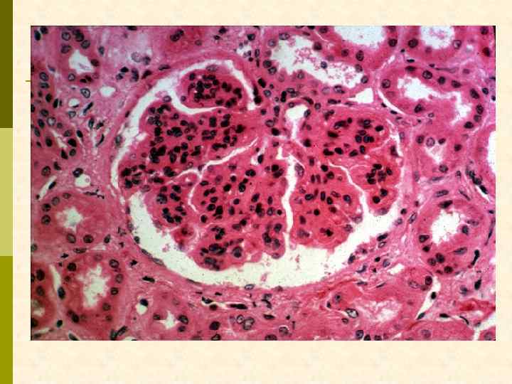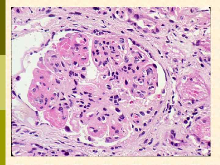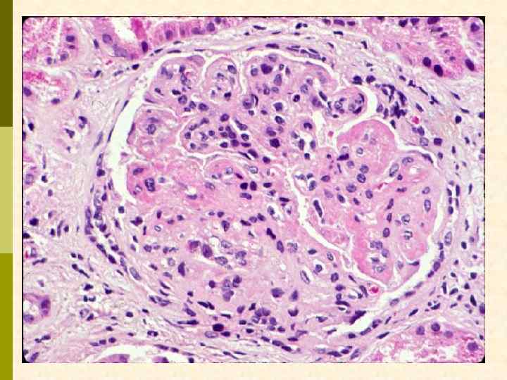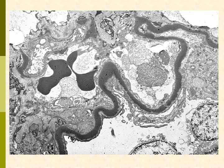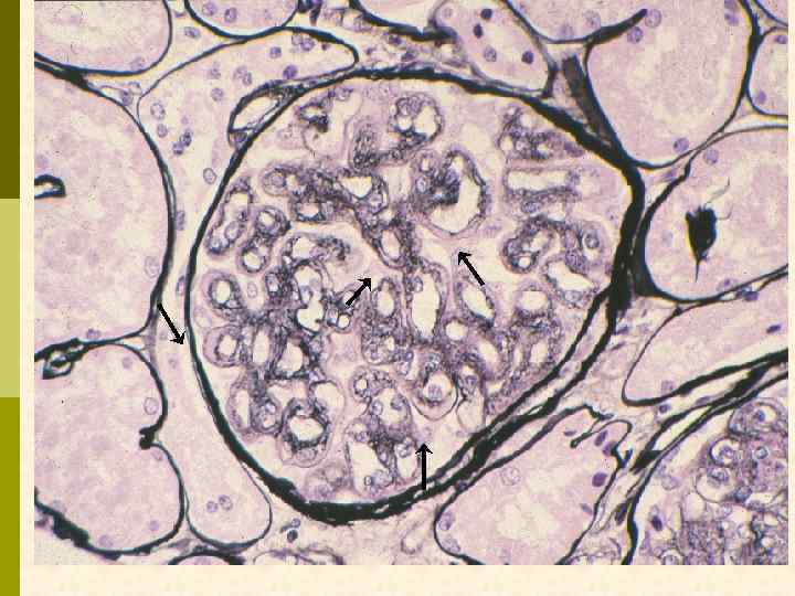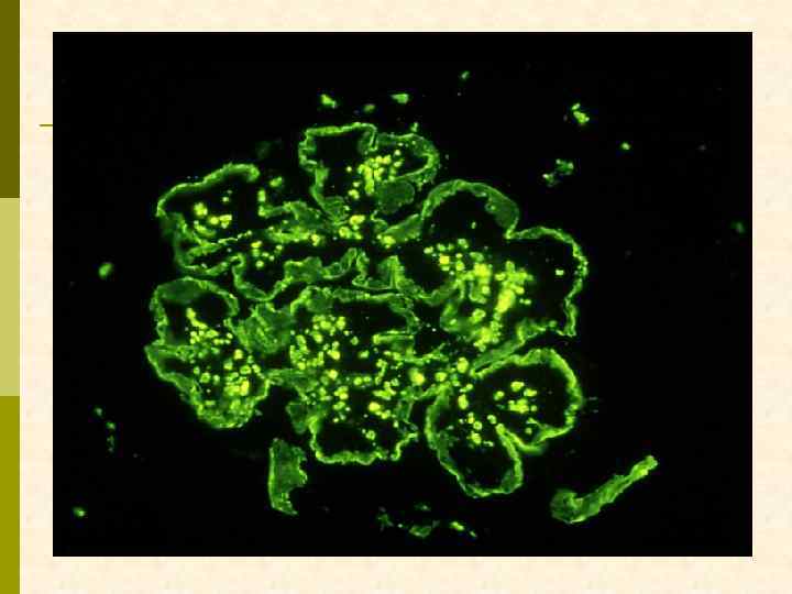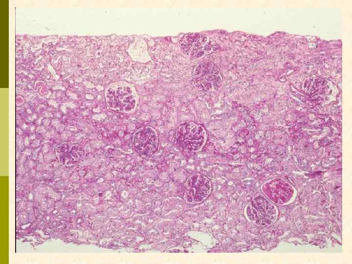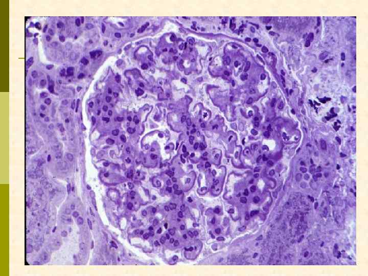 МЕМБРАНО-ПРОЛИФЕРАТИВНЫЙ ГЛОМЕРУЛОНЕФРИТ МОРФОЛОГИЧЕСКИЕ ПРИЗНАКИ гиперцеллюлярный клубочек утолщение капиллярной стенки СОСТОЯНИЯ, АССОЦИИРОВАННЫЕ С МЕМБРАНО-ПРОЛИФЕРАТИВНЫМИ ИЗМЕНЕНИЯМИ § Иммунокомплексные болезни § Тромботические ангиопатии § Болезни отложения парапротеинов